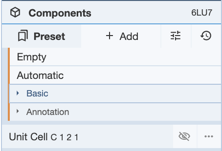 Then go to the Components Panel where it lists the components of only 6lu7. Click the “eye” icon to hide each component. In the 3D canvas, you should only see 6yb7.