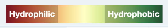 To color an entire structure based on hydrophobicity, go to Polymer under the Components Panel. Click the Options button to the right, and select Set Coloring. Under this menu, select Residue Property, which will open another menu. Select Hydrophobicity. Hydrophilic residues will be colored in shades of red/orange and hydrophobic residues will be colored in shades of green. Learn more about coloring options.