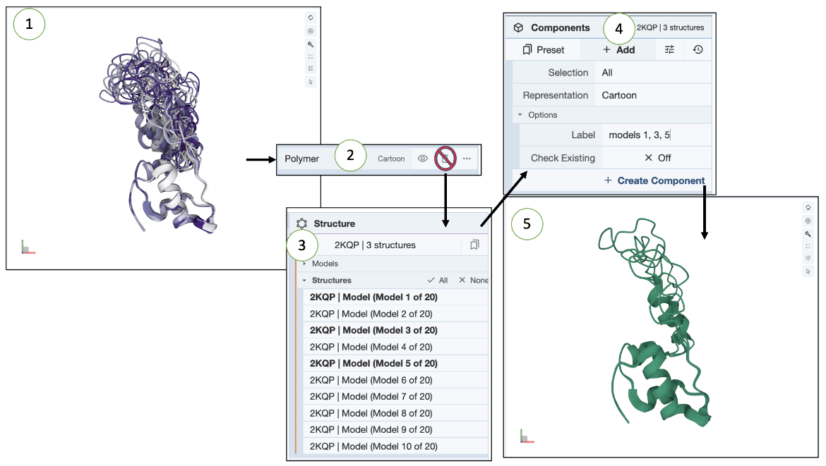 - Now click on each of the models that you would like to see on the 3D canvas - i.e., model 1, model 3, and model 5. As you click on these in your list, these models should be shown in bold.