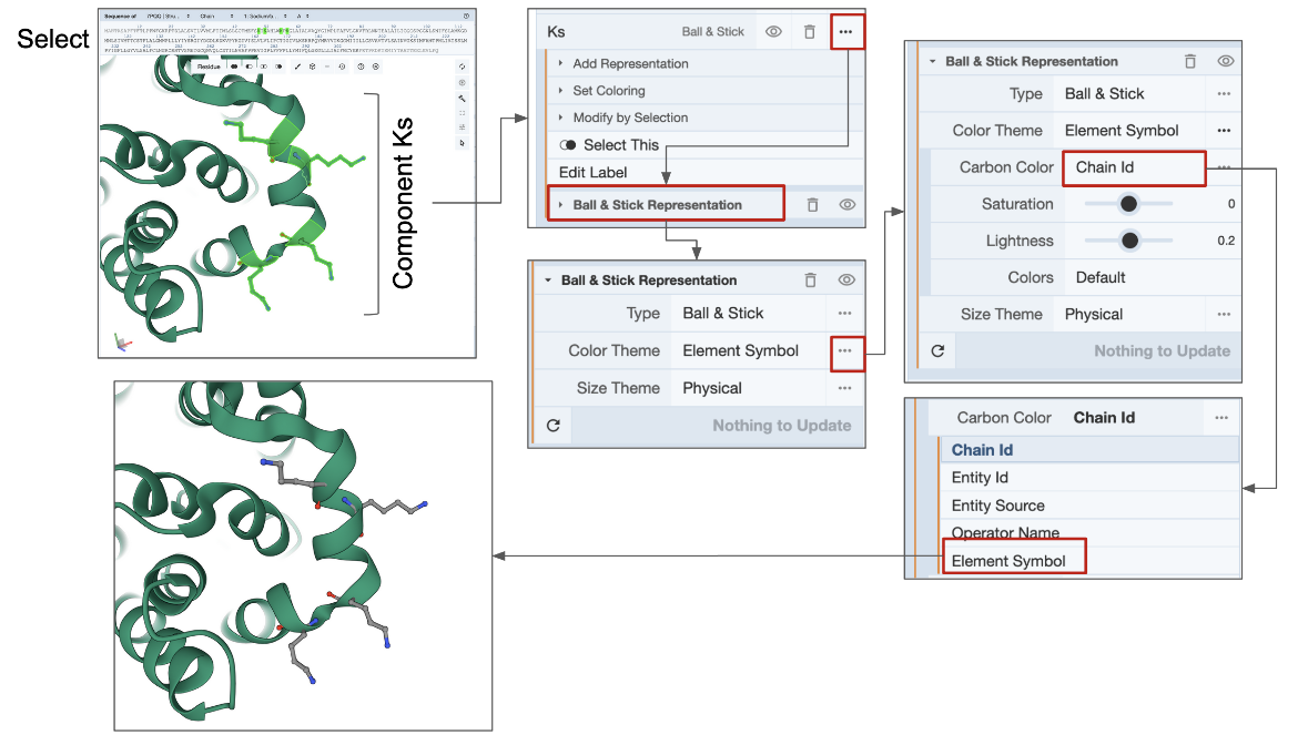 | Steps for coloring carbon atoms in a user-chosen color. |