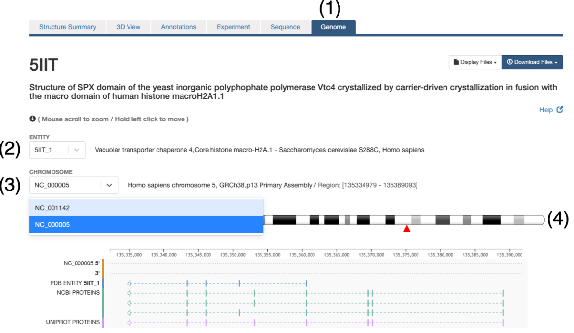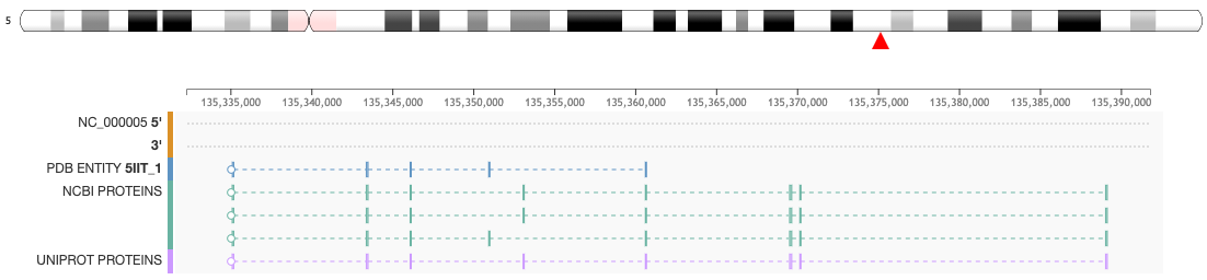 • In order to explore the protein-genome mapping click on the Genome Tab of the Structure Summary Page (e.g. 5IIT)