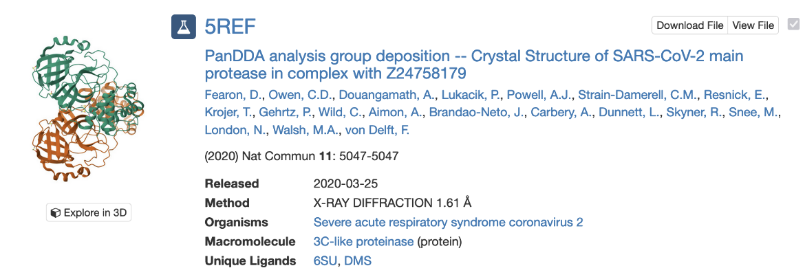 The contents and navigation of the Structure Group Summary page is explained with an example - a large-scale fragment screening against the SARS-CoV-2 main protease, one of the proteases essential for viral replication - PDB Deposit Group ID G_1002151.