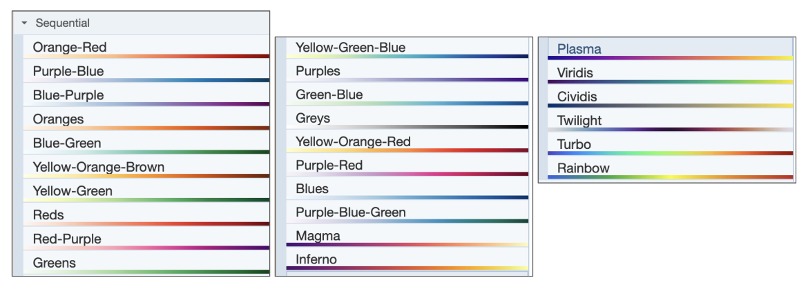 | Figure 7: Options of the Sequential color palette available in Mol*. |