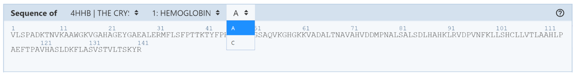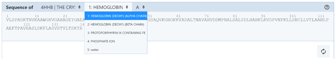 • Third drop-down menu: allows the user to decide which part of an entity the sequence should be from. If there are multiple copies of the entity in the structure, this drop-down menu will list them based on their chain IDs.