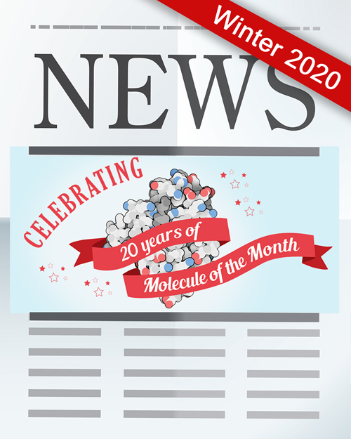 20 years of molecular stories; 2019 statistics; GPCR paper model; and more. Education Corner by Bonnie Hall (Grand View University) describes using the Protein Data Bank in the College Classroom.